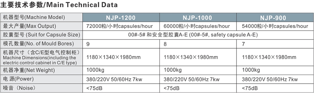 NJP-1200/1000/900A、C、Eseries FullY automatic capsule filling machine