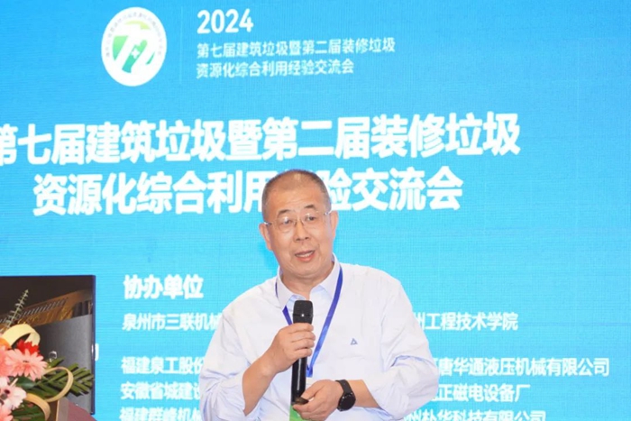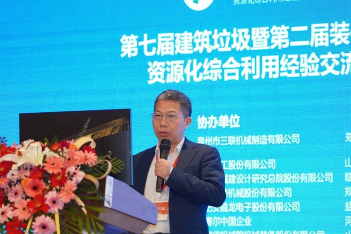 盧(lú)洪(hóng)波董事長在報告中著(zhe)重分(fèn)析(xī)了建築垃圾資源化行業的現狀、建築垃圾存在的(de)主要問題以(yǐ)及戰略與政策層麵的問題。同時指出“分選不(bú)幹淨,仍舊是(shì)垃圾(jī)”,重申分選設備在拆建(jiàn)垃圾、裝修垃圾資源化利用中的重(chóng)要性,並對三大固廢協同資源化創(chuàng)新發展(zhǎn)、關鍵工藝技術與關鍵裝備進行了重點闡述(shù),分享了部分建築拆建垃圾、裝修垃圾資(zī)源化利用的案例。