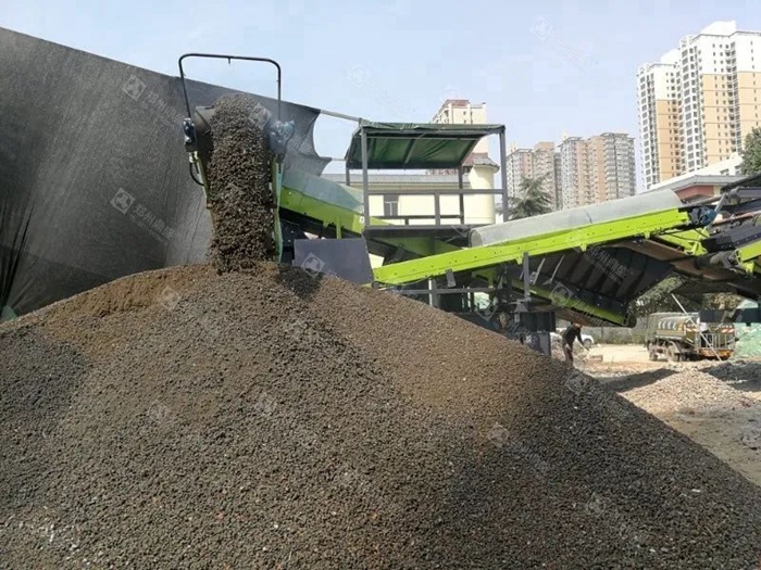 初級篩分機主要作用是將原料中的細料分離出來,為下道工序中的人工分揀做準備(bèi),讓適量粒徑的材料(liào)進入人工分揀工段。由於這部分成品料中含雜(zá)物相對較少,篩分出來(lái)的成(chéng)品料(liào)既可以直接用作回填材料,也可以進一步篩分進行分級(jí),還可以再次進入(rù)破碎機,破碎後使用(yòng)。