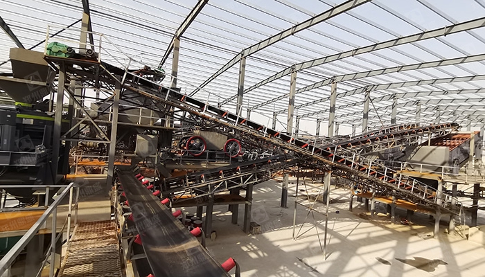 設備配置:ZSW振動篩分(fèn)喂料機,JC顎式破碎機,AF反擊式破碎機,YKF圓振動篩,除鐵器,輕物(wù)質分離器,除塵器,皮帶輸送機