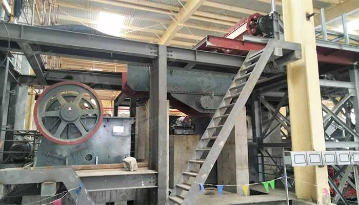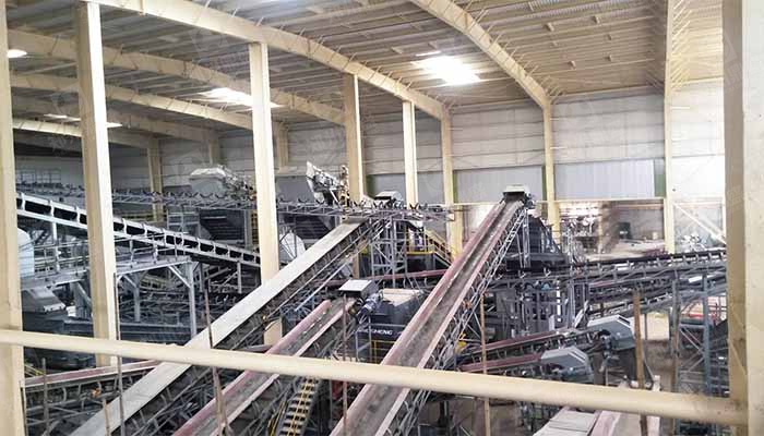 設備配置:棒條篩、雙齒輥破碎、振(zhèn)動(dòng)篩、磁選、風選、光(guāng)選、反擊破(pò)碎、磁選、振動篩、渦流分選
