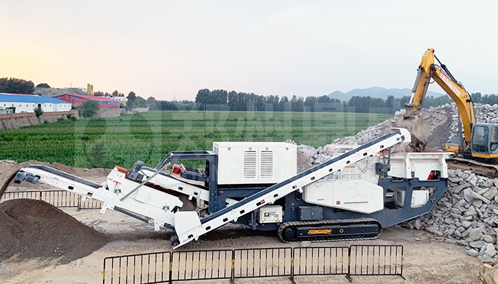 建(jiàn)築(zhù)垃圾破碎專用(yòng)履帶式移動破碎篩分一體車