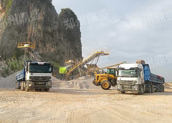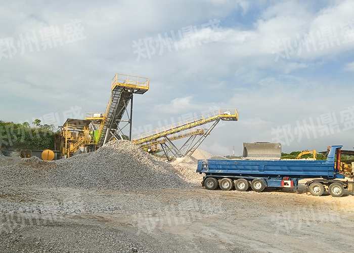 設備組成:顎式移動破碎站(zhàn)+振動篩分機