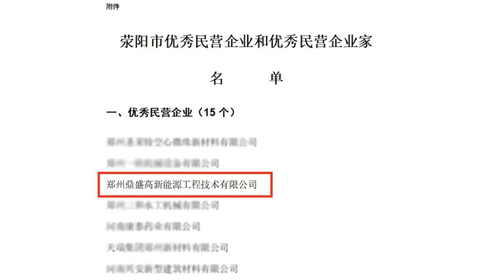 近日,中共滎陽市委公布(bù)了(le)《關於滎陽(yáng)市優秀民營企業和優(yōu)秀民營企業家》的名單。鄭州色多多免费视频高新能源工(gōng)程技術有(yǒu)限公司(以下簡稱“鄭州色多多免费视频”)榮獲“滎陽市優秀民營企業”榮譽稱號。