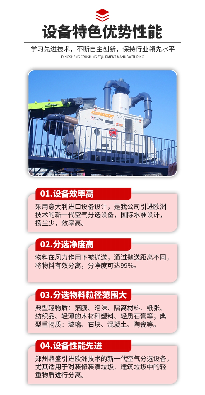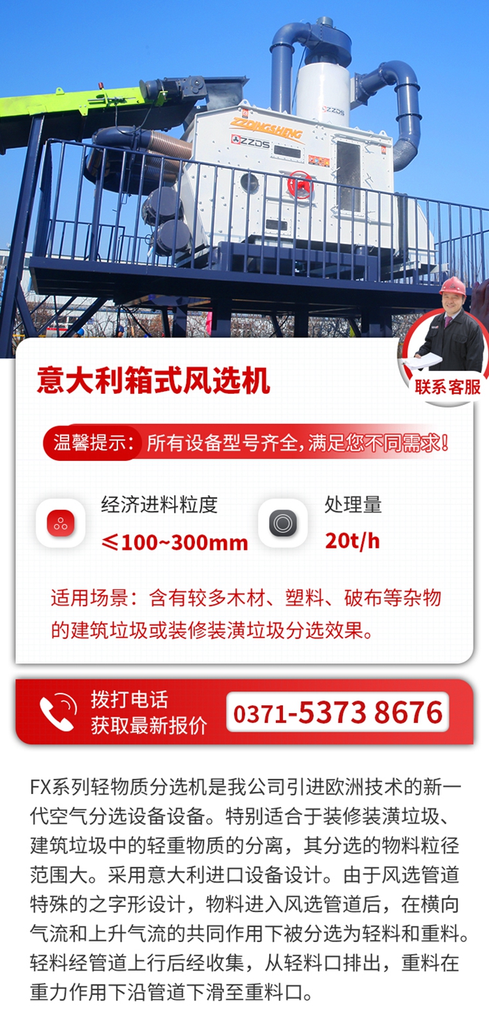 裝修垃圾(jī)風選機是一種(zhǒng)利用風力將裝修廢棄物中的可回收物質分離的設備。它是一種有效的自動化設備,能(néng)夠大大提高回收效率和減少人工幹預。