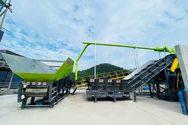 設(shè)備配(pèi)置:板(bǎn)式(shì)喂料機、階梯棒條篩、雙軸撕(sī)裂機、滾筒篩、臥式打散風選機(jī)、人工分揀倉、除鐵器、收塵器等