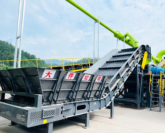 人(rén)工(gōng)與機械配(pèi)合,分揀出完整木材(cái)、塑(sù)料等可回收物;