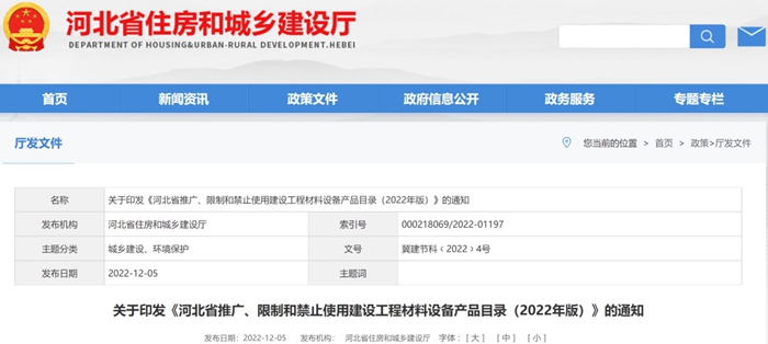 河北省推廣、限製和禁止使(shǐ)用(yòng)建設工程材料(liào)設備產品目錄(2022年(nián)版)