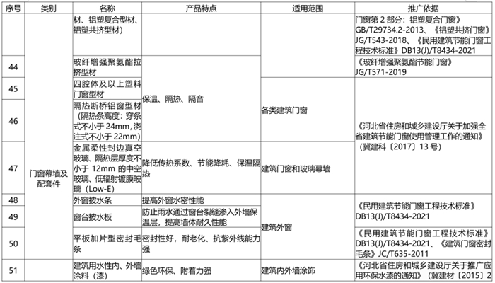 為推(tuī)廣應用綠色節能(néng)環保型材料設備,促進建設工程品質提升,推動城(chéng)鄉建設綠色發展。近日,河(hé)北省住建廳印發《河北(běi)省推廣(guǎng)、限製和禁止使用建設工程材料設備產品目錄(2022年版)》(以下簡稱(chēng)《目錄》),同時廢(fèi)止《河北省推廣、限製和禁止使用建設工程材料設(shè)備產品目錄(2018年版(bǎn))》。