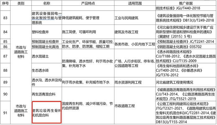 ——市政與道路(lù)施工材料中推廣使用建築垃圾再生骨料無機混合料;