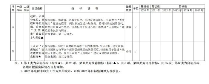 三(sān)、紮實開展“無廢城市”建設(shè)評估(gū)。為確保“無廢城市(shì)”建設取(qǔ)得實效,各地要以2020年為基準年,開展“無廢城市”建設評估工作,按(àn)照《吉林省“無廢城市”建設指標體係》(見附件)中的25項必選指標、8項推薦指標、25可選指標,摸清本地(dì)區“無(wú)廢城市(shì)”建設底數,並於明年1月底前,將(jiāng)評估結果報送至我廳,為準確評估“十四(sì)五”時期“無廢城市”建設情況提供基礎數據。