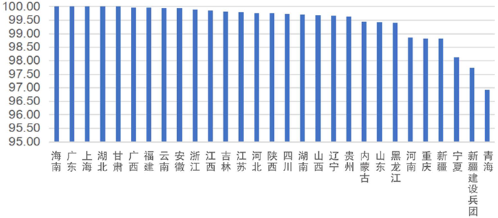 圖2:第一(yī)個履約周(zhōu)期各地區配額清繳完成情況【注2:西藏自治區無符合納入條件的重點排放單位(wèi):北京市、天津市、廣東省(不含深圳市)由(yóu)於已參與地方碳市場2019、2020配額發(fā)放(fàng)和清繳,不參與(yǔ)全國碳(tàn)市場第一個履約周期配額分配和清繳。】