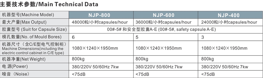 - NJP-800/600/400 A,C,E型(xíng)係列全自動膠囊填充機(jī)