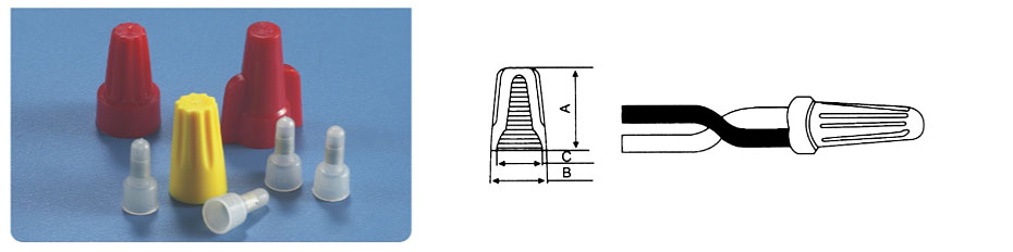 材質:內部套管由銅度銀(yín)製成,外部采用UL認(rèn)證之尼龍66料或聚乙烯製成。 使用方法:將電線外皮剝去插入套管內,用壓線鉗壓緊即可。 用途: 電(diàn)器製品之優良接線器。 Material:Siver-coated copper piese coverd by UL.Appoved Nylon or PE. How to use:Put in the bare wire end into the cap and press with clipper. Application:Wire joining.